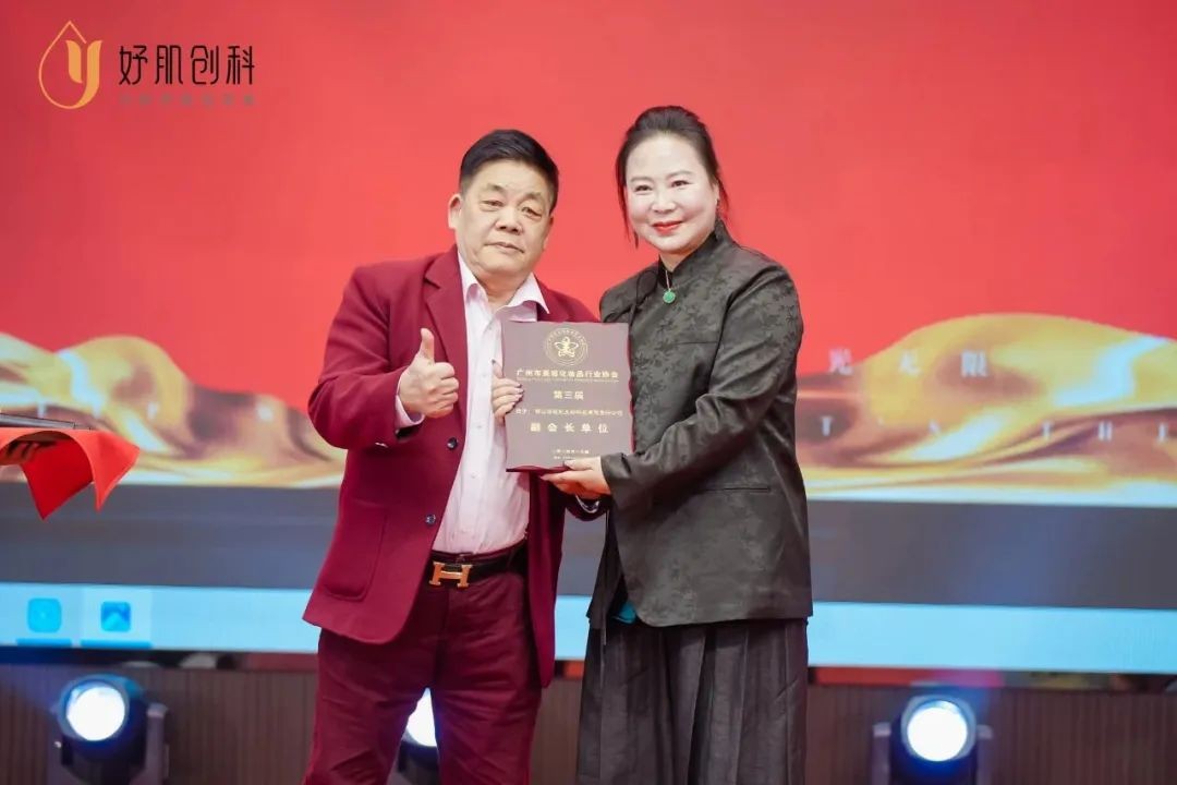会上妤肌创科被广州市美容化妆品行业协会颁发了“广州市美容化妆品行业协会第三届副会长单位”荣誉,此殊荣不仅是对其多年在美容领域卓越贡献的高度认可,更是企业与行业间合作伙伴关系的重要证明。
