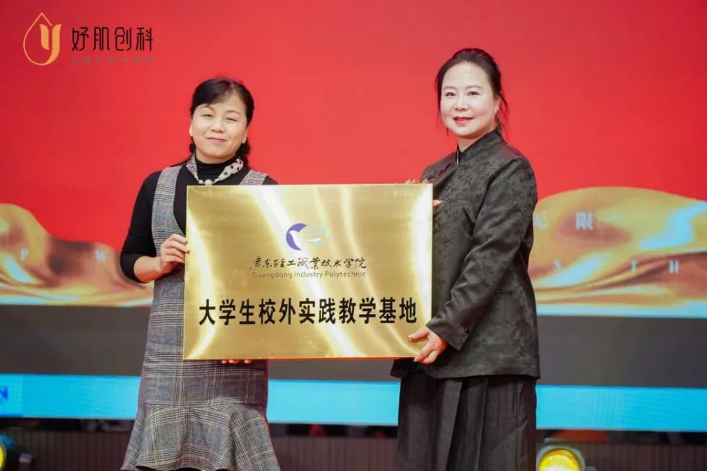此外,在峰会的尾声,受邀参与本次活动广州轻工学院的领导,还特别授予了好肌创科企业“广州轻工职业技术学院校外实践基地”和“校企合作基地”两项荣誉称号。这两项授牌不仅是对好肌创科行业实力的重大肯定,更是企业责任意识的展现和社会担当的承诺。