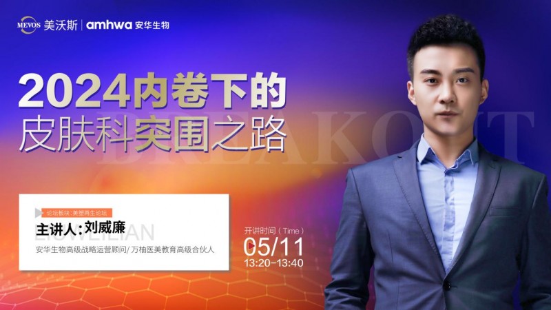 安华生物高级战略运营顾问、万柚医美教育高级合伙人刘威廉现身2024年杭州美沃斯大会再生与美塑论坛,这一事件彰显了安华生物对医美行业再生材料和技术的高度关注与期待。作为行业内资深专家,刘威廉的参与无疑为大会注入了更多专业性和权威性。在论坛上提出在高度竞争的医疗美容市场,尤其是皮肤科领域,要突围而出需要深入分析数据并制定有效的产品运营策略。