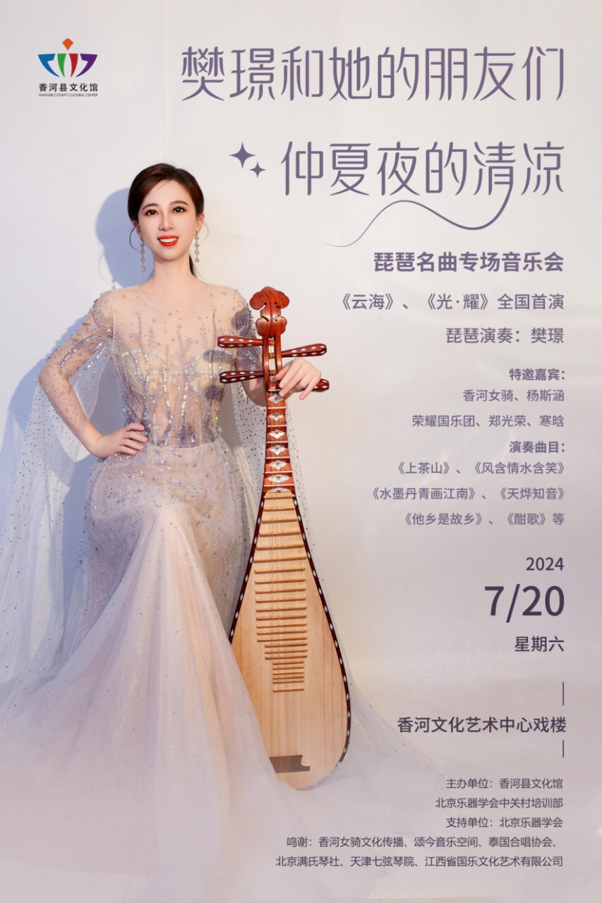 “仲夏夜的清凉”——琵琶名曲专场音乐会,将于2024年7月20日19时,在香河文化艺术