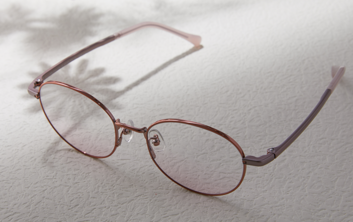 时尚眼镜JINS睛姿本次推出的腮红美颜镜片,一共有两个色系。粉色系软糯可爱,它的设计是在镜片的下半部分加入粉色染色,所以戴上眼镜之后,就能呈现温柔的粉色腮红效果,素颜也能够诠释甜美风范。