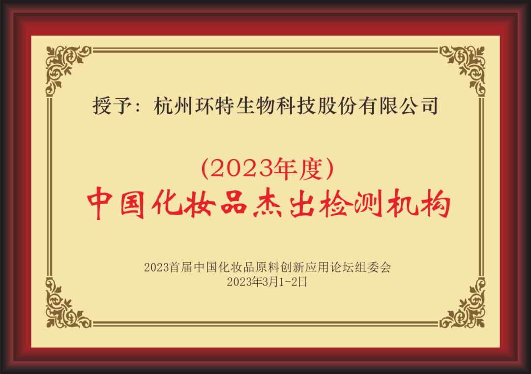 环特生物凭借卓越的技术实力一举斩获“2023年度中国化妆品杰出检测机构”。本次获奖,代表着业内对环特生物“斑马鱼+人体功效”一站式化妆品功效与安全评价技术实力与服务的认可,标志着环特生物持续以技术创新助力中国化妆品高质量发展,赢得了广泛赞誉和良好的业内口碑!